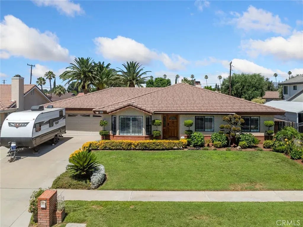 Welcome to 9130 Boxwood Avenue in Fontana! This beautifully upgraded single-story home offers space, comfort, and thoughtful design, ideally situated in a quiet cul-de-sac surrounded by well-kept homes and sidewalks. With three spacious bedrooms plus a versatile bonus roomperfect for a home office, guest room, or creative spacethis turnkey property is ready to impress. Inside, you'll find updated flooring, baseboards, hardware, and custom cabinetry throughout. The open-concept kitchen is a showstopper, featuring granite countertops, stainless steel appliances, tiled backsplash, and rich cabinetry with ample storage. Adjacent to the kitchen, the living and dining areas include a custom-built bar with elegant windowed cabinets and a wine rackperfect for entertaining. The family room is anchored by a cozy brick fireplace, adding warmth and character. The large primary bedroom is a peaceful retreat, offering extra closet and storage space, along with a spacious en-suite bathroom that features a soaking tub, separate shower, dual sinks, and updated finishes. Down the hall, two generously sized guest bedrooms provide large closets and easy access to the freshly remodeled guest bathroom, which includes custom tile, quartz countertops, and white shaker-style cabinetry. The front yard boasts excellent curb appeal and a wide driveway with space to accommodate RV parking. In the backyard, youll find an entertainers paradisecomplete with stamped concrete, a relaxing water fountain, mature fruit trees, and a charming gazebo with built-in lighting. All landscaping is designed for low-mai