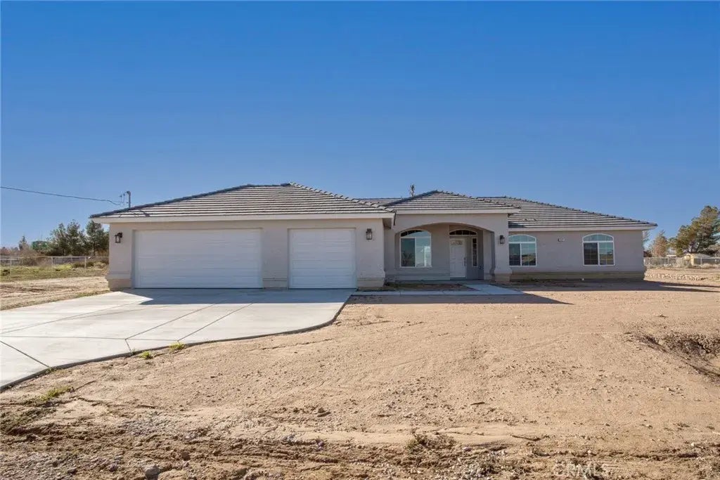 CHECK OUT THIS IMPRESSIVE NEW CONSTRUCTION HOME IN HESPERIA! This home offers approximately 2100 SF of amazing living space. Enjoy your kitchen with solid surface counters, functional cabinets, large pantry, center island and modern appliances. The gathering area is spacious and inviting. The split floorplan offers a comfortable feel with the main bedroom on one side of the house and with a bathroom to include dual sinks, separate tub and shower. The other bedrooms are off the hallway and are adequate in size and share a bathroom. Next to the indoor Laundry is also a half bath that is great for guests. There is a total of 4 Bedrooms and 2 Bathrooms. Also, there is plenty of parking in the 3 car garage. Enjoy the desert weather under the covered patio overlooking a large lot, approx 1.6 acres. Solar panels that are owned are included and installed at the minimum standards. Take a look at this Amazing Home!