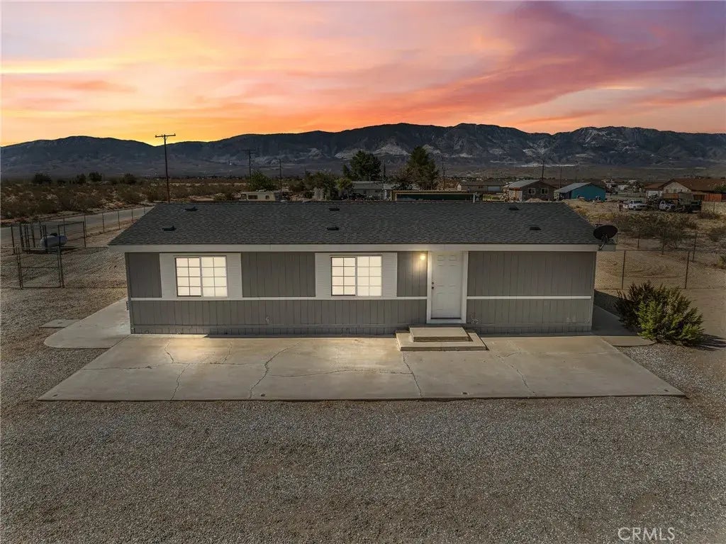 This 3 bedroom, 2 bathroom manufactured home on a permanent foundation sits on 0.9 acres and packs a lot into its 1,056 square feet with brand new interior paint, fresh carpet, new flooring, and brand new window coverings throughout giving it a clean, updated feel. The roof and septic are newer, so the big stuff is already taken care of. Outside, youll find cement walkways and patios in the front and back, plus a fully covered back patio that runs the length of the house, perfect for relaxing or entertaining. There are two sheds for storage, a fully fenced and crossfenced yard with 6 foot chain link, an enclosed area for trash pickup, and a separate fenced space for the rented propane tank. This property is located right on paved Old Woman Springs Rd, just a 7 minute drive into the center of Lucerne Valley for groceries, gas, and other amenities. Old Woman Springs is the main road to Yucca Valley, Joshua Tree, and the back way into Palm Springs. For off-road racing fans, this home is right on the route to the King of the Hammers Race. Barstow, Big Bear, and Apple Valley are all about 30 minutes away. Its move-in ready and has everything you need to feel right at home. Dont miss your chance to make this one yours. Schedule a showing today and come see all it has to offer!