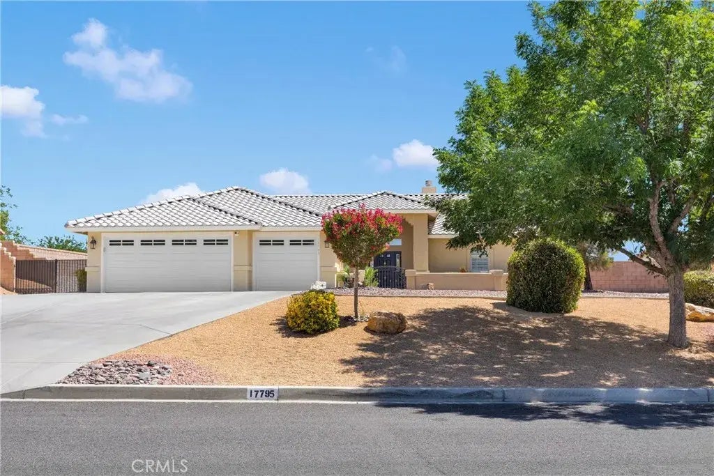 Stunning Upgraded Home in Apple Valley! Welcome to 17795 Branding Iron Rd, a beautifully updated single-family home nestled in the heart of Apple Valley, CA. Perfectly situated on a spacious 20,000 sq. ft. lot, this exquisite 3-bedroom, 2-bathroom residence offers 2,610 sq. ft. of thoughtfully designed living space, ideal for growing families. Enjoy the open floor plan of this home. Every room in this home has been meticulously upgraded with high-end finishes and modern touches. Step inside to find new flooring, elegant plantation shutters and 12 high ceilings. Enjoy cozy evenings by one of the two fireplaces or entertain guests in the expansive living areas enhanced by crown molding, upgraded baseboards, and stylish ceiling fans. This kitchen is a chefs dream with double ovens, cooktop, dishwasher, travertine backsplash, under-cabinet lighting, a beautiful custom-built island and granite countertops. The master suite is a luxurious retreat, complete with a dedicated A/C unit, his-and-hers walk-in closets, dual vanities, granite counters and a spa-like atmosphere. This home is as functional as it is beautiful, featuring a split floor plan, a formal dining room, a separate laundry room with upper and lower cabinets with a large folding counter, and a 3-car garage that comes with insulated doors, quiet openers, and a full workshop equipped with built-in cabinets and workbench. Outside, the beautifully landscaped front and backyard are designed for both relaxation and entertainment. Enjoy morning coffee in the large front courtyard or host gatherings under the covered back pat