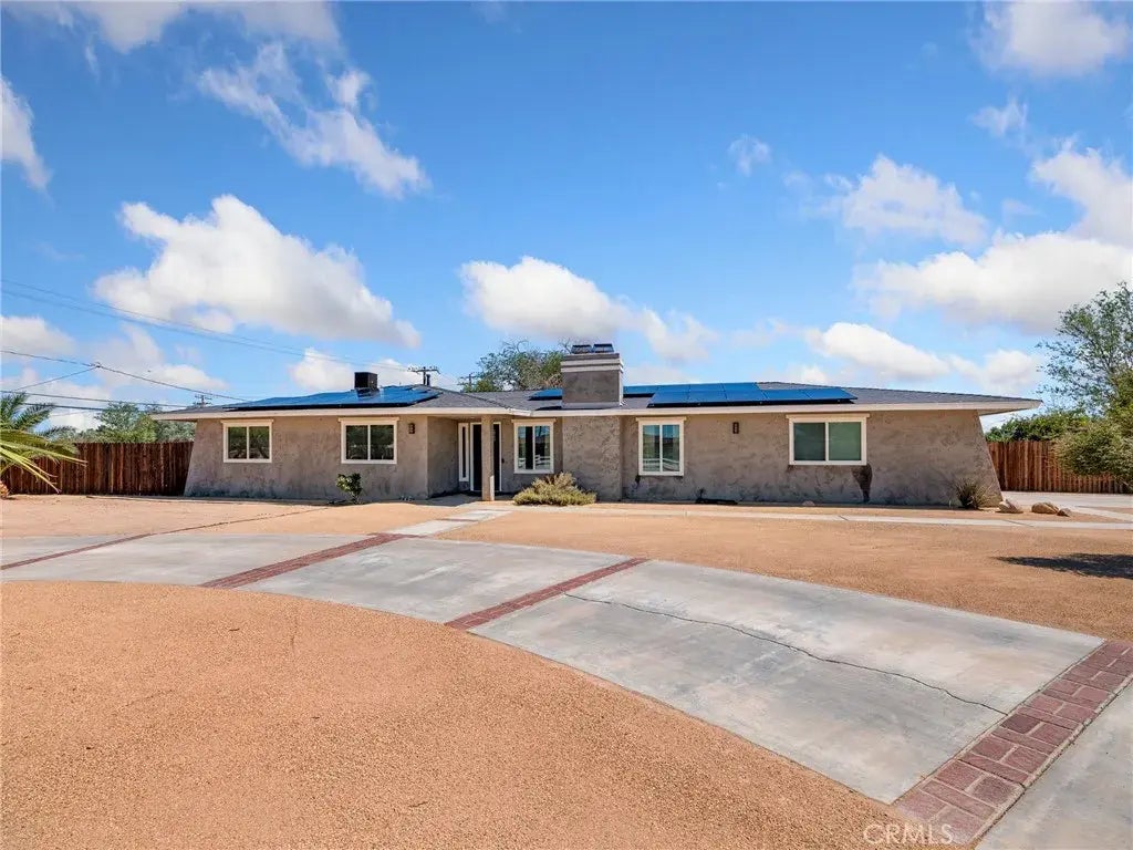 Home is on a one acre corner lot big enough for all your toys with double gate for easy access. Home had some improvements in 2019, new roof, new windows, insulation in attic, new stucco and solar installed with 21 panels and insulated garage door. New heating and Air condition put in Aug 2025,2 fireplaces one in Living room the other in enclosed patio which is a wood burning stove ,Central air and 2 evaporative coolers. 2 water heaters, 2 sheds on property and one has evaporator cooler and electric. water softener, plumbed for electric car, circle drive. front landscaped for easy maintenances, full fenced and cross fenced, horse stall and chicken coop .