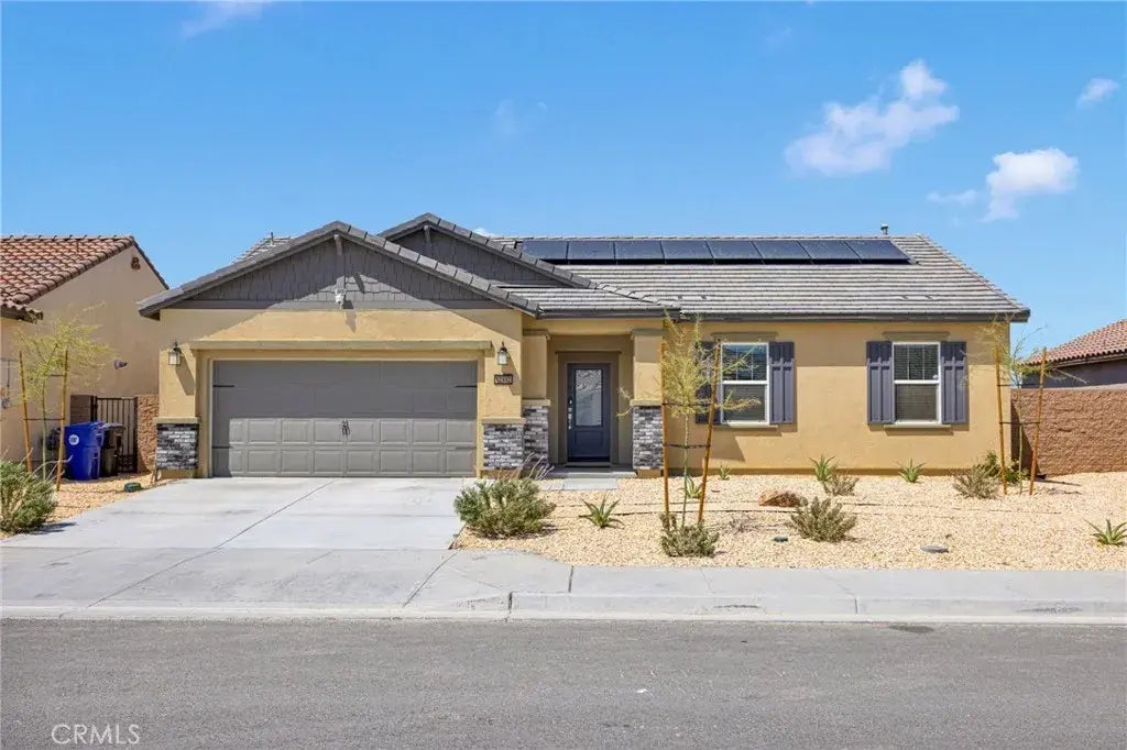 Step into this stunning 2023 new construction home in the desirable Desert Willow Village community. Featuring 3 spacious bedrooms, 2 modern baths, granite countertops, stylish vinyl plank flooring, and a Wi-Fienabled garage door opener, this home blends comfort with convenience. Enjoy the bonus of fully paid solar panels for energy savings year-round. Perfectly located just 3.5 miles from High Desert Gateway and 4 miles from Adelanto Marketplace, with quick access to Highway 395 making it an ideal choice for commuters who work down the hill but want to come home to peace, space, and affordability. Close to shopping, dining, and entertainment, this home delivers both value and lifestyle..