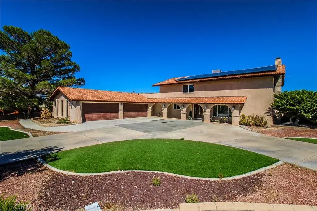 Size and space in Apple Valley! Situated on nearly an acre in one of the towns most desirable neighborhoods, this 4 bed, 4 bath home offers 2,572 sq ft of living space, two en suite bedrooms (one up, one down), and each additional bedroom with its own bath access. Step inside to soaring ceilings, a dramatic staircase, elegant wood-look floors, and a chefs kitchen with granite counters and rich cabinetry. Outside, enjoy a covered patio and your very own backyard putting greenperfect for entertaining on warm desert evenings. Energy-efficient solar, a 4-car garage, and a large circular drive add to the appeal. Sq. Ft. not verified. Information deemed reliable, not guaranteed.