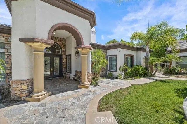 Welcome to your dream home! This exquisite single-story oasis is situated in the prestigious Amberhill Estates Community of South Corona. The main residence boasts an impressive 5 bedrooms and 6 bathrooms, offering ample space for your family and guests. Additionally, there is a detached guest house, spanning 1334 square feet, featuring 2 bedrooms and 2 bathrooms. As you step onto the property, you'll be captivated by the sheer beauty of the over half-acre, resort-like, private lot. This outdoor paradise includes a custom pool and spa adorned with enchanting waterfalls, an inviting outdoor fireplace and patio, a built-in BBQ island and pizza oven for culinary enthusiasts, a delightful putting green, and a tranquil koi pond with cascading waterfalls. One of the standout features of this remarkable home is its fully owned solar system, providing sustainable energy to the whole property. As you enter the main house, you'll be greeted by a grand foyer, adorned with custom built-in library bookcases and desk. The coffered ceilings exude elegance, while the custom fireplaces with mantels in the formal living room and great room add a touch of sophistication. The great room, designed with an open concept, seamlessly connects the living room and wet bar to the dining area and kitchen, creating a harmonious and functional space. The kitchen itself is a chef's dream, equipped with modern appliances, ample cabinet storage, pantry space, and a massive center island. Whether you're a culinary enthusiast who enjoys preparing elaborate meals or someone who prefers quick and easy recipes,