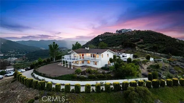 **Forever View Home with Cottage Charm on 11 Acres in La Cresta** Nestled in the heart of La Cresta, this enchanting property boasts 11 acres of breathtaking views that will captivate your soul. Overlooking the vast La Cresta valley with panoramas of the Cleveland National Forest, Mount Baldy, Mount San Jacinto, Mount Palomar, and the glittering lights of the Temecula Valley, this privately gated, fully fenced estate is a sanctuary of beauty and tranquility. Recently renovated, the home exudes country charm with stunning views from every room. Imagine sipping your morning coffee or evening wine on the expansive wrap-around viewing deck, where you can catch awe-inspiring sunrises and sunsets while listening to the gentle call of nature. The quiet, rarely traveled street offers the perfect balance of convenience and serenity. The meticulously landscaped grounds feature interconnecting walk-paths that lead to delightful destinations, including vibrant flower gardens, a three-stall barn, a round pen, and a flat, usable pasture. With plenty of space for a guest house, ADUs, or additional barns, the possibilities are endless. Discover the unique Santa Rosa Plateau lifestyle, characterized by 5-acre minimum parcels, friendly neighbors, star-filled skies, and an unparalleled sense of peace. Despite its serene setting, the property is just minutes from town conveniences, schools, restaurants, hospitals, grocery stores, and the 15 Freeway. Immerse yourself in a world where you can enjoy equestrian activities, community events, hiking, and exploring miles of private recreational trail