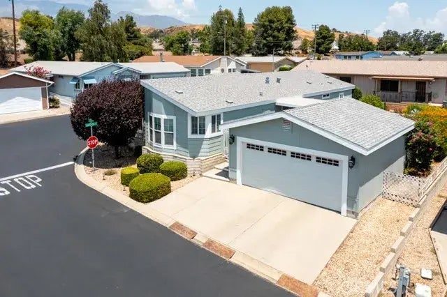 Welcome home to this spacious single-level residence in the well-established 55+ community of Mountain Springs Estates in Banning, CA. This home offers 1,647 sq. ft. of living space, including 2 bedrooms, 2 baths, and an additional den or office space. The large primary suite features a walk-in closet and double sink. High ceilings and window shutters in the formal dining area add to the home's energy efficiency and charm. With newer exterior paint, new roof, new garage door and monitor. This well maintained home is situated on a spacious 3,049 sq. ft. corner lot, making it one of the larger properties in the communitya huge plus! The detached automatic 2-car garage as well as 2 additional spaces in front of the garage, a beautiful backyard with a patio cover provide ample outdoor living space. Enjoy the bounty of mature peach, lemon, lime, and plum trees, which produce a generous crop of delicious fruit. The Mountain Springs community offers fantastic amenities, including a pool, pickleball, tennis courts, picnic areas, and more. Enjoy stunning mountain views and the company of great neighbors in this peaceful and welcoming community. Come see it in person to appreciate its charm!
