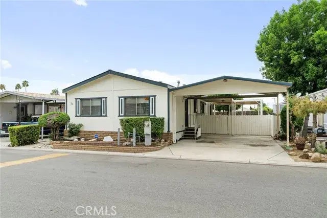 Welcome home! This spacious mobile home is located in the city of Highland, offering 1,344 sq. ft. of living space with three bedrooms and two bathrooms. Upon entry, you are greeted by upgraded plank flooring installed throughout the main living areas - providing a uniform flow and easy maintenance. Youll be able to entertain effortlessly in this open floor plan, featuring a newer kitchen with a custom hood, wifi compatible stainless steel appliances, 5 burner stove w/ air fryer, and upgraded soft closing cabinet space for all your storage and organizational needs. The primary bedroom has direct access to the back patio and is equipped with an en suite bathroom featuring a soaking tub and standing shower. Two additional bedrooms separate from living space, a secondary bathroom, and a laundry area complete the interior of this home. The backyard patio area is hardscaped to provide easy maintenance, a shed for extra storage, and includes an area to start your future garden. Fresh exterior paint, newer roof, a greenbelt directly across the street, and beautiful views of the mountains. Community amenities include a pool, spa, clubhouse, and more! Conveniently located near the I10, 210, and 330 frwy. Make this house a home with your special touchschedule your private showing today.