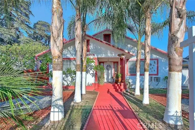 This beautiful corner lot home is a must-see to fully appreciate all it has to offer. The home boasts a spacious living room with a fireplace, a dining area, wood laminate, and tile flooring throughout most of the house, two bedrooms, one updated bathroom, a separate laundry room, and a covered patio with ceiling fans, leased solar panels. The detached two-car garage, currently utilized as a bedroom, includes a mini-split AC/heater, the garage is completely drywalled with exception of the garage door, garage also has recessed lighting, two ceiling fans & a closet. The garage offers flexibility and can be used as a traditional garage, man cave, possible ADU conversion or whatever suits your needs. The home features numerous upgrades such as a newer roof, a new wall furnace, and fresh interior and exterior paint. The large corner lot provides RV parking and ample additional street parking alongside the house, complemented by an array of fruit trees including mango, avocado, lime, and more. Home is near local stores, gas station and easy access to local freeways.