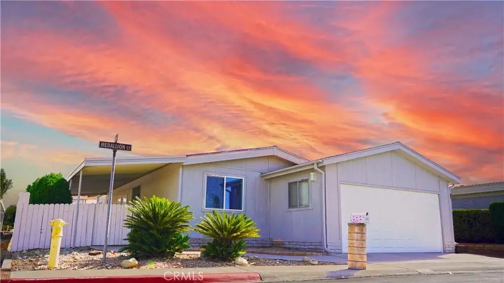 OWN BOTH YOUR LAND AND HOME in the sought-after 55+ community of Royal Carriage Estates in Redlands. This well-maintained, move-in ready home offers a blend of comfort and convenience. Featuring 2 bedrooms and 2 bathrooms, the master suite includes a private bath with updated flooring, a vanity area, and a relaxing tub. The open-concept living and dining area provides a spacious feel, enhanced by updated flooring throughout. The kitchen shines with updated countertops, cabinets, and flooring, offering plenty of storage and workspace. A built-in hutch adds charm to the dining area, perfect for displaying your favorite pieces. The large laundry room also includes ample storage for all your needs. Outside, unwind on the long, covered patio, perfect for enjoying fresh air and peaceful moments. This propertys great location and thoughtful updates make it a must-seedont let it pass you by! HOA covers water, sewer, trash.