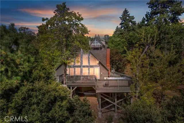 Stunning Prow-Style Home with Lake Rights in Lake Arrowhead Located on the desirable north side of Lake Arrowhead, this turnkey home offers level entry into a beautifully designed, light-filled living space. The open-concept great room boasts soaring ceilings and a dramatic wall of glass that floods the living and dining areas with natural light while providing breathtaking views. The main level features two bedrooms, including a spacious primary suite with an ensuite bath, and a second bedroom with a full bathroom nearby. Upstairs, youll find two additional guest rooms and another full bath, perfect for hosting family and friends. Step out onto the expansive deck to relax in your private hot tub, surrounded by serene mountain and peak lake views. This property sits on over half an acre with the additional lot included in the price, offering privacy and space to enjoy the outdoors. Conveniently located near Tavern Bay Beach Club, the national forest, Lake Arrowhead Village, and just a short drive to the country club, this home is an excellent opportunity to enjoy all the beauty and amenities Lake Arrowhead has to offer. Dont miss out on this unique lake rights property!