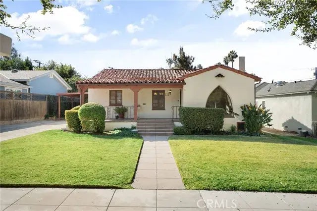 Step into a piece of history with this enchanting 1938 Spanish-style home, exuding classic charm and architectural beauty on one of downtown Redlands most iconic streets, Buena Vista! A tree lined expansive parkway decorated with charming classic street lamps. This delightful home showcases 3 bedrooms, 2 bathrooms, a cozy fireplace in the living room, and exquisite, original details like graceful arched doorways and windows, and vintage door knobs that speak to its rich heritage. You will likely discover original hardwood flooring throughout under the carpeted areas. Set on an expansive lot, this property is a true sanctuary. The meticulously landscaped front and back yards are lush with greenery, offering the perfect retreat for outdoor gatherings or quiet relaxation. The backyard also features a spacious garage and several quaint storage sheds that complement the propertys unique character. An inviting front porch, with its terracotta-tiled steps, provides a perfect spot to soak in the charm of this iconic neighborhood, making it an ideal place to unwind and enjoy the warm California evenings. This is Spanish-style living at its finest, blending timeless beauty with historic charm. Professional photos coming soon!