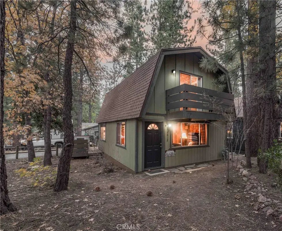 Welcome to your dream escape in Lower Moonridge on La Cerena Avenue ~ This captivating Gambrel style cabin is perfectly positioned on a large corner lot within walking distance to the newly renovated Moonridge Corridor ~ Just around the corner you will find attractions like the zoo, nine hole public golf course, Bear Mountain and Snow Summit Ski Resorts ~ The cabin offers two generously sized bedrooms featuring serene views of the towering trees and high ceilings with exposed wood beams ~ Cozy up around the corner fireplace with a hot cup of cocoa on chilly nights enjoying the warm, inviting atmosphere in the living area, complemented by abundant natural light from all sides of the home ~ The yard and outdoor space offers a large deck, bbq area and hot tub completing the wonderful setting for entertaining or relaxing ~ Close to the National Forest with endless outdoor activities including hiking, biking, and sledding. Extra storage is available in the outdoor shed ~ Situated just minutes from the vibrant downtown of Big Bear Lake.