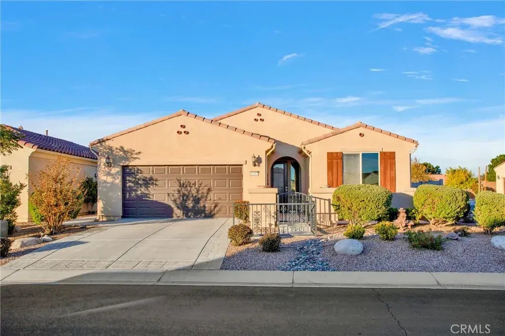 Charming Single Family Residence in Del Webb's 55+ Community Welcome to your new oasis in the heart of Apple Valley! This beautifully appointed home features 3 spacious bedrooms, 2 bathrooms, and a spacious office. The interior highlights include plantation shutters, tile floors, and elegant granite countertops. Situated on a desirable corner lot, the property boasts lovely landscaping with vibrant roses and low-maintenance desert plants, creating a serene outdoor retreat. As well as an extended patio cover. The open and split floor plan enhances the flow of the living space, making it ideal for both entertaining and relaxing. Enjoy the abundance of natural light that fills the home, highlighting its inviting ambiance. Residents of this vibrant community enjoy access to a wonderful clubhouse with a sparkling pool, tennis courts, and a range of adult activities. Embrace an active lifestyle with nearby golfing, pickleball, and fishing opportunities. Plus, youll appreciate the convenience of being just moments away from shopping, dining, and entertainment options.