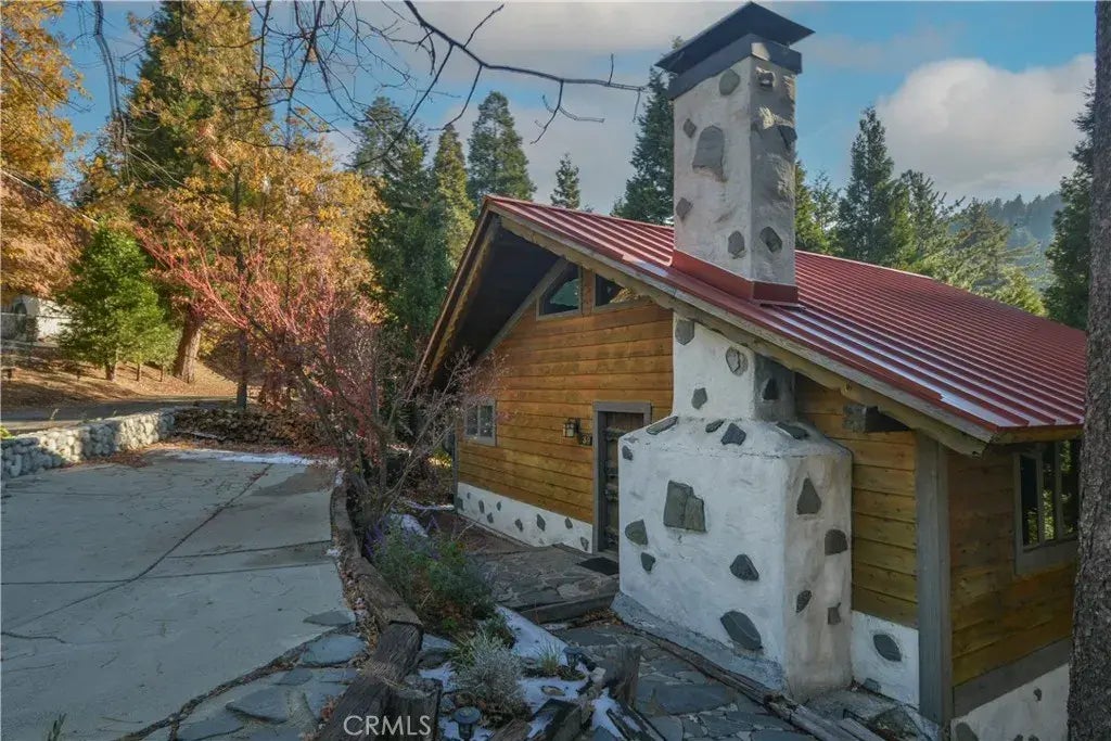 Situated at the end of a cul-de-sac in our serene mountain this enchanting English cottage blends the timeless charm of a storybook retreat with the adventurous allure of a chalet. This home immediately welcomes you into a space where old-world elegance meets warm mountain living. Inside, a grand stone fireplace stretches to the vaulted ceiling, its flickering warmth casting a golden glow on the rich original wood floors. Leaded windows frame breathtaking views of the forest. The interior wooden beams and winding staircases leading to hidden nooks and lofted spaces. The main living wet bar is perfect for toasting snowy evenings or cool summer nights with friends. Main floor offers a magical soaking tub ensuite, and access to a balcony the entire length of the house, offering a front-row seat to nature. This home has old world charm, with the amenities of newer appliances. stone countertops and a new state of the art metal roof. This home comes turnkey, no need to find the perfect furnishings for this incredible home, it has already been hand selected! Whether you're curled up by the fire, sipping a drink at the bar, or stargazing from the terrace, this mountain sanctuary promises endless charm and tranquility. You will feel so far removed, yet just moments away from town filled with shopping and restaurants, and the home of gorgeous Lake Gregory. Perfect walking trails and lake activities as well!