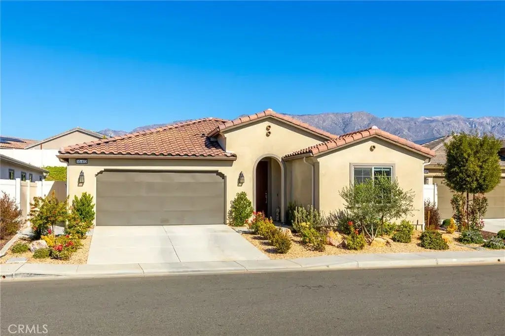 Welcome to this vibrant, 55+ community and resort style living of Altis in Beaumont. This Gorgeous 3-bedroom, 2-bathroom home on a premium lot offers every detail thoughtfully designed to enhance your everyday living. This home was built in 2022 and is loaded with premium upgrades and smart features like ring doorbell, Alexa and Wi-Fi features, PAID SOLAR, and a tankless hot water heater. These energy-efficient additions provide you with long-term savings and eco-friendly living. Inside, you are welcomed by an open concept living area, complete with high ceilings and beautiful upgraded luxury vinyl flooring. The kitchen is a chefs delight, with high end appliances, farmhouse sink, walk in pantry and generous counter space, with plenty of space to entertain and host guests. The primary suite is your private retreat, a spa-like bathroom designed for the ultimate in relaxation. The laundry room has been upgraded as well with a utility sink and cabinets. Step outside through 10' center opening sliding doors to your professionally landscaped, low-maintenance backyard, which sits on a premium lot and includes an alum-a-wood patio cover, a weber gas BBQ and Cuisinart chimenea for relaxing outdoors. The oversized garage is a dream "man-cave" with built in shelves, a rolling work bench and peg board for hanging tools. The Altis Community offer walking trails, a 16,000 sq ft VUEPOINT Clubhouse with a fitness center, fitness studio, massage room, 2,100 sq ft lap pool, 4,300 sq ft swimming pool, poolside lounge, whirlpool spa, BBQ areas, firepits, five pickle balls courts, card room w/