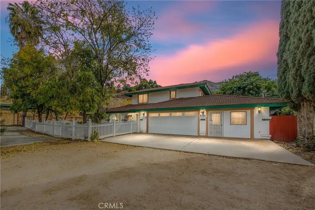 A home for the AUTO/RV/BOAT ENTHUSIAST'S DREAM! Country Living! Property includes a Loaded 2400 Sq. Ft. WORKSHOP - 40 x 60. Whether it's cars, boat, RV or horses...this property offers all the possibilities. WORKSHOP features roll up doors on each end, swamp cooler and 1/2 bath. The property features a well that just had a Brand New Pump & Motor installed in December of 2024. This Custom Built home just had a refresh with new vinyl planking, new carpet and new interior paint. Home sits on approx. 2.5 acres and offers an UPSTAIRS LIVING QUARTERS featuring 2 bedrooms with adjoining bathroom and a 2ND SEPARATE KITCHEN and a patio deck that offers a back entrance allowing for very comfortable MULTI FAMILY LIVING. Primary bedroom with bathroom and secondary bedroom downstairs. Additional full bathroom downstairs as well. Attractive archways and dark rich wood accents throughout the home make it a classic! Situated comfortably away from the road, the front enclosed patio/courtyard with built in barbecue, offers a pace for relaxation, entertainment and a view of the rolling hills of Reche Canyon. Attached 2 car garage with a large bonus/hobby room with laundry hookups would make a fabulous laundry/utility room. Another laundry area in the kithen behind louvered doors or it could be transformed into an ovrsized pantry! You pick- 1 or 2 laundry areas! 2 air conditiioning units, well and setic sytem plus propane for gas utility make for a very efficient home with low utility costs.