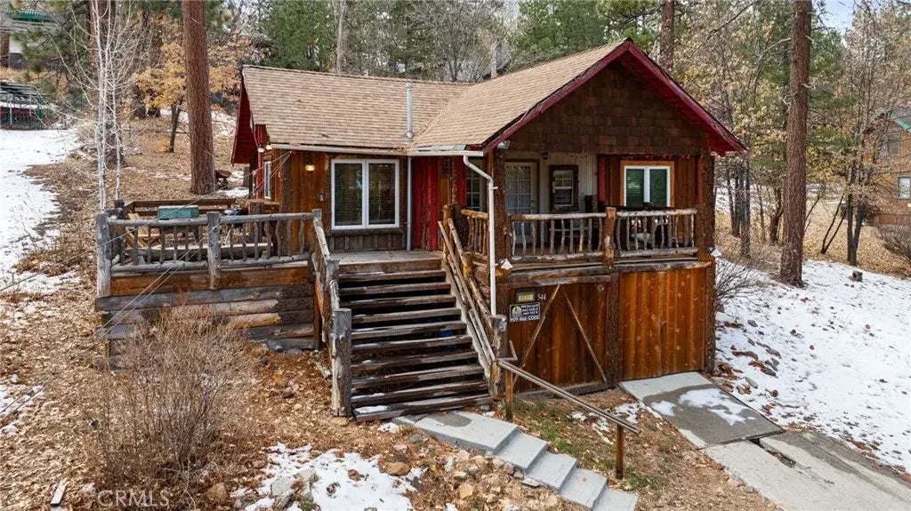 Don't let the age or the outside of this cabin fool you. Seller has kept the rustic look on the outside to add to it's charm. The electric and plumbing have been updated. This cabin ins a great weekend getaway offering a peaceful retreat in a mountain setting. Hardwood floors, beamed ceiling, 2 bed 1 remodeled bathroom. Enjoy the tranquility of the lake views from the spacious Trek deck. Huge 13,000 sq ft lot with views of the lake from the large trek covered deck. Additional storage space under the house. This home has been a successful vacation rental. Must see in person!