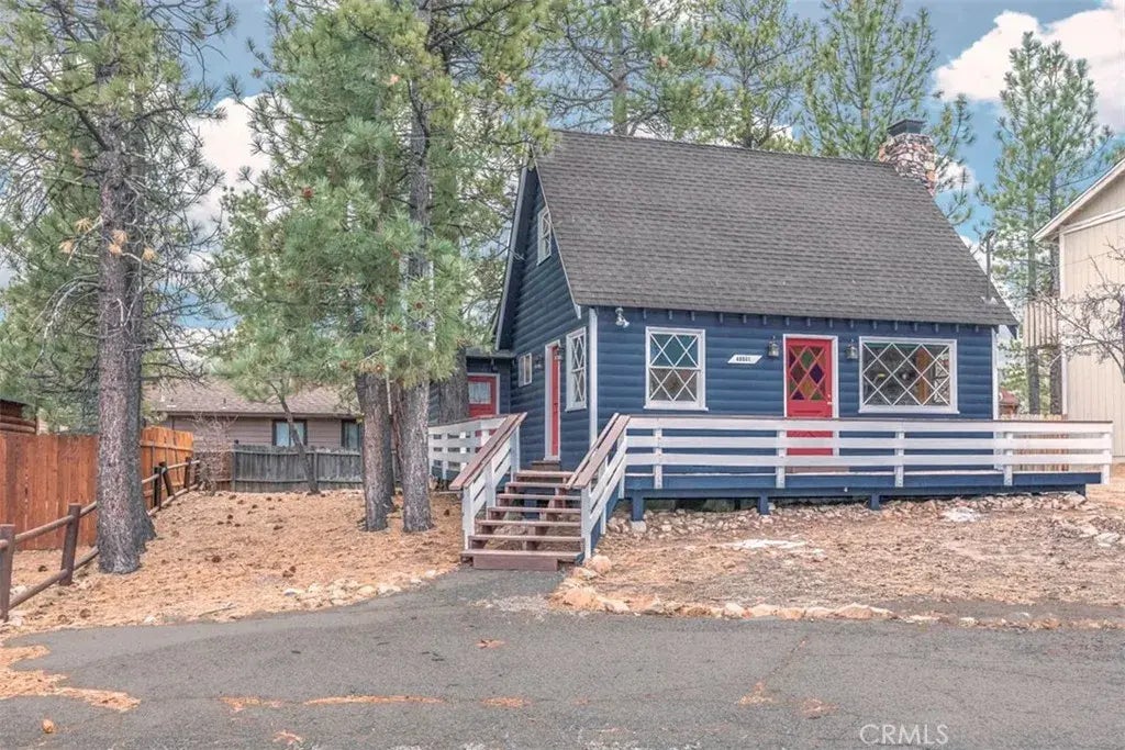 Discover this charming retreat NEAR THE LAKE offering a fantastic central location with Holloways Marina, snow play, the Village shops & dining and many of Big Bears most popular attractions-minutes away. Inviting and full of character, this 792 Sq Ft 2-bedroom, 1-bathroom log-style cabin is nestled on a spacious level lot offering the warmest of welcomes. Step inside to find a spacious living and dining area featuring beautiful tongue-and-groove wood ceilings and walls. The native-stone fireplace is a focal-point and the classic wood-mullioned windows create a true mountain cabin feeling. Boasting a large window overlooking the treed setting and a new wood-style floor, the cozy den extends the living room and provides extra seating, a possible game area and a second pull-out sofa for additional guests. The cabin mixes classic charm with nice upgrades and practical amenities that are sometimes hard-to-find in a Big Bear cabin. The bathroom is beautifully renovated with a fantastic custom tile & pebble-stone shower, updated vanity, fixtures & plumbing. Most of the exterior surfaces were recently stained or painted. There is a laundry room with washer & dryer located inside the home, paved, level parking and a spacious yard offering room for boat or RV parking. The comfy beds & mountain-themed furniture (per inventory) are included so you can start enjoying right away! The delightful kitchen complements the homes rustic charm with artful cabinetry and a sweet breakfast table bathed in natural light. There is a built-in stainless-steel dishwasher and a direct-access door to th