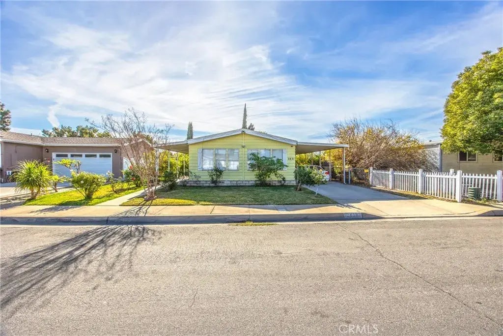Welcome home to Birch Street. This manufactured home features 2 large Bedrooms and 2 full bathrooms and is also on a permanent foundation. The interior of this home features a bright living space with a built-in china cabinet in the entryway and dining area, complemented by a ceiling fan and durable tile floors throughout. The kitchen boasts a breakfast bar, stainless steel appliances, and a large pantry, with the stainless steel refrigerator included. The master bedroom is large in size, has mirrored closet doors and a slider that leads you to the patio. The master bathroom is complete a large vanity, an oval soaking tub and separate shower. The guest bedroom also includes mirrored closet doors and is conveniently located near the guest bathroom with a shower/tub combination. An oversized laundry room provides exceptional storage to keep everything organized. Outside, enjoy a large covered front patio, perfect for relaxing or entertaining. The spacious carport and storage shed add to the home's convenience. The backyard is a gardeners dream, featuring fruit-bearing lemon, peach, avocado, plum, and guava trees. This home is NOT located in an HOA or 55+ community. Close to shopping, Freeway, Hospital and Rialto High school.