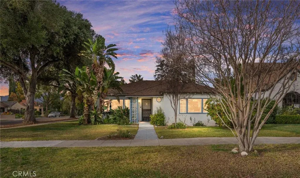 Charming single story home with a detached two car garage in the heart of South Redlands' Smiley Park Historic District. Built in 1939, this two bedroom home is located right between Olive Ave Market and Gerrards Market, just two blocks from both! It's also less than one mile to the Redlands Bowl, the Lincoln Shrine, McKinley Elementary School and Cope Middle School. Upon entering the large front living room, you are greeted by beautiful hardwood floors, covered in natural light from the dual pane windows. A dining room features french doors that open up to the covered patio. The adjacent kitchen with a breakfast booth has an attached laundry room, and another exterior door that leads into the gated backyard. There are two spacious bedrooms, one with an attached full bathroom. An additional half bath is located off the laundry room. The detached two car garage is a very generous size. Excellent Redlands Schools.