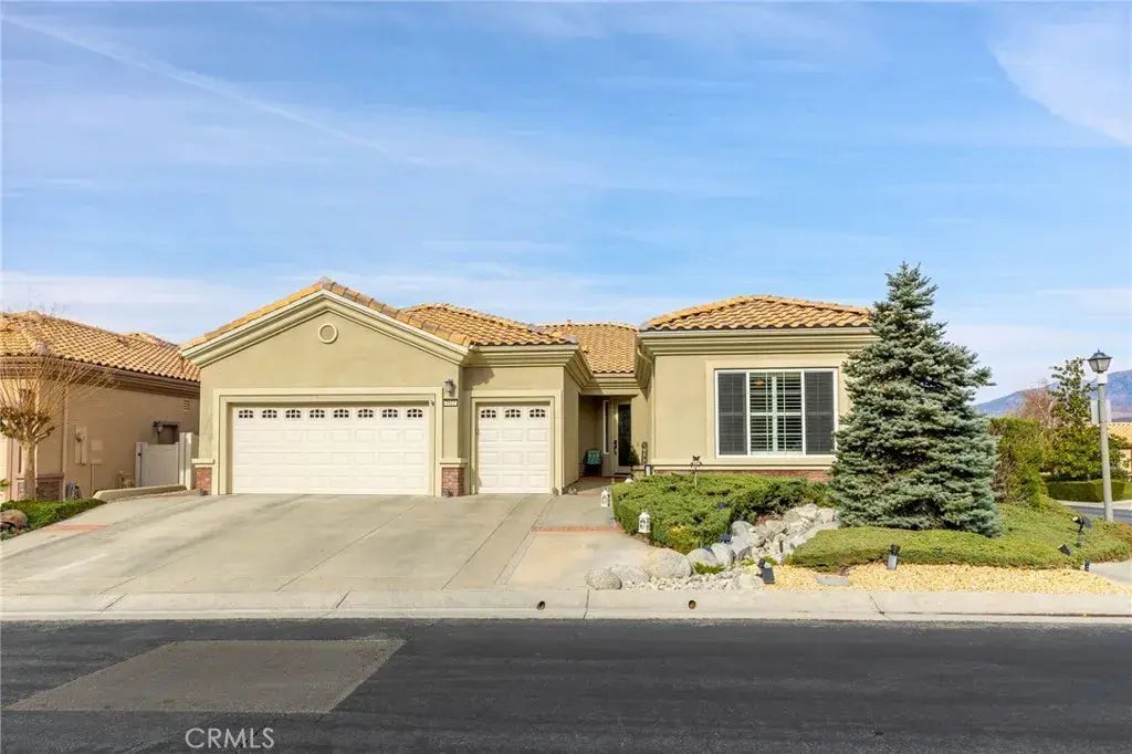 OVER $100,000 IN UPSCALE CUSTOM UPGRADES! STUNNING! GORGEOUS! ENERGY EFFICIENT "EMERALD" model located in BEAUTIFUL SUN LAKES COUNTRY CLUB, Southern California's Premier 55+ Active Adult Community. Featuring the "Great Room" Concept, Large Open Gourmet Kitchen, at Approx. 2133 SF, 2 BD + Den, 2.5 BA, 2 Car + Golf Cart Garage. TO NAME A FEW OF THE MANY DESIGNER-LIKE CUSTOM UPGRADES INCLUDE: Complete Recently Painted Interior & Exterior, NEW Porcelain Wood Plank Flooring, 5.5 inch BaseBoards, NEWER STAINLESS STEE Appliances, New QUARTZ Counter Tops & Enlarged Kitchen Island, NEWER Custom Fireplace w/Stacked Stone Rock Veneer, Mantel, Extended Hearth w/Granite Top, Custom Cut Glass Front Entry Door & Side Window, Main Bathroom is Remodeled w/NEW QUARTZ Counter Top & Tiled Shower & Glass Door, NEW Tiled Floors in All Baths, Plantation Shutters T/O, Solar Window Shades, NEW Custom Ceiling Fans & Chandelier, Custom AIR PURIFYING A/C with Micropure Total Home Active Air Purifier W/ Aprilaire Filter System, NEW Solid Alumawood Patio Cover running the length of the back of home, NEW Garage Doors & Openers (DBL Steel Insulated & Powder Coated Doors), Epoxied Garage Floor, Garage Ceiling Storage Racks, PLUS MANY MORE CUSTOM TOUCHES. Beautifully Landscaped with Low Maintenance Front & Backyards, Bull Nosed Raised Planters on a Back Drop of the MAJESTIC SAN GORGONIO MOUNTAIN RANGE. BRING YOUR MOST DISCERNING BUYERS! THEY WILL LOVE THIS HOME! Two 18 Hole Golf Courses - Championship & Executive, Driving Range, 2 On Site Golf Pro Shops, 3 Clubhouses, Grand Ballroom, 2 Restaurants, NEWLY EX