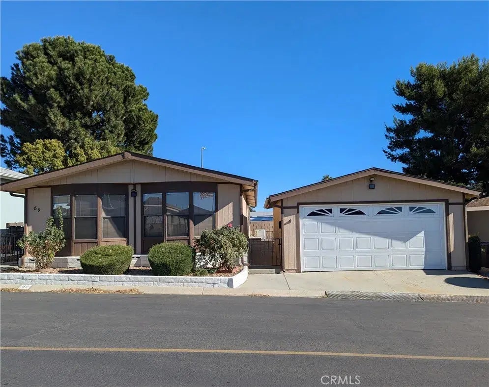 Banning Estates- Beautifully maintained 2 bedroom, 2 bath home with 1344 of living sf. Located in the 55+ adult community with pool, spa and clubhouse. Monthly HOA fees of $140. Manufactured home is situated on it own lot. Features a private low maintenance backyard with beautiful mountain views and 2 car detached garage. Home has fresh new paint throughout. New master bath vanity light and toilet. New kitchen recessed lighting. Water heater is 1 year old. Come and preview your new home.