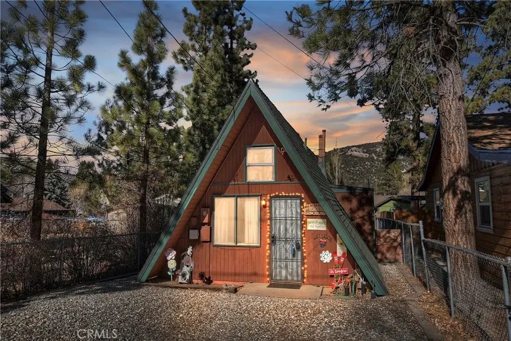Welcome to your very own unique A-frame retreat! Enjoy the ultimate relaxation as you sit on your back porch, surrounded by fresh mountain air and serene views of the national forest. This charming home is ideally located just 5-10 minutes from all the best that Big Bear has to offer. As the best-priced true A-frame on the market, its a rare opportunity to own a special piece of Big Bear living. Dont miss outeveryone loves an A-frame! Make it yours today!