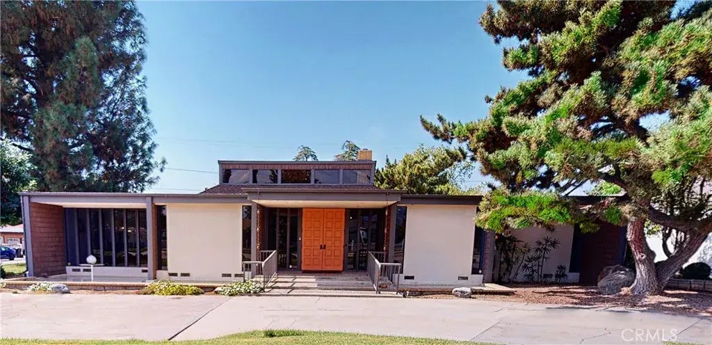 A one-story, architectural masterpiece on a 10,800-square-foot corner lot, situated on one of the areas most prestigious historical streets. This contemporary 1970 home draws inspiration from Frank Lloyd Wrights timeless designs, with expansive floor-to-ceiling and clerestory windows inviting natural light to flood in. The entry makes a striking impression, with sweeping, low-terraced steps, symmetrical pools, a fountain, double entry doors, and a cantilevered awning sheltering the 716-square-foot porch, setting the tone for this serene, elegant space that brings the outdoors inside. Custom designed by the owner of Bings Cathay Inn one of the area's finest dining establishments for over 3 decades the home showcases refined Asian-inspired touches, including a professionally designed built-in wok in the kitchen, sliding Asian doors, and designer wood partition separating the living room from the foyer. The living room offers a sophisticated yet inviting ambiance with its step-down entrance, sleek built-in bar with dual wine coolers, espresso-colored cabinets, soaring brick fireplace, and beamed cathedral ceiling. Sliding glass doors connect the living room to the maturely landscaped backyard, creating a perfect space for covered al-fresco dining in a peaceful retreat. For culinary enthusiasts, the kitchen is a dream come true. Outfitted with top-of-the-line stainless steel appliances, a commercial-grade built-in wok, 5-burner gas stove, recessed lighting, and thoughtful details like a pot-filler above the stove and a copper hood, it also includes a built-in coffee bar. The ki