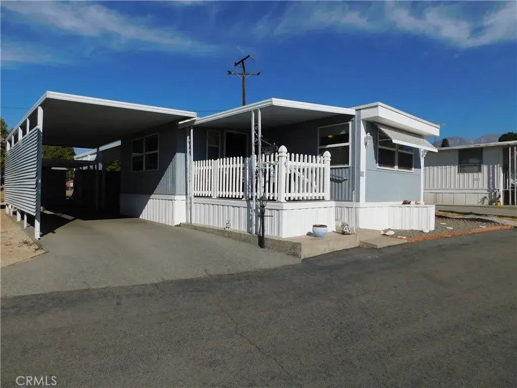 ~BEAUTIFUL HOME SITUATED ALONG THE PERIMETER OF THE PARK LOCATED IN YUCAIPA'S 55+ COMMUNITY OF CARAVAN ESTATES...LOW SPACE RENT ONLY $326~MANY UPGRADES INCLUDE ...DUAL PANE WINDOWS, FRESHLY PAINTED EXTERIOR PLUS NEW SKIRTING IN 2023, NEW FURNACE IN 2022,NEW WATER HEATER IN 2022, CUSTOM WINDOW COVERINGS & VALANCES IN 2022, NEW OVEN & HOOD IN 2021 PLUS NEW FRIDGE IN 2023~BRIGHT OPEN LIVING ROOM WITH CATHEDRAL CEILINGS~SPACIOUS KITCHEN WITH CABINETS AND COUNTER SPACE GALORE...FRIDGE INCLUDED~QUEEN SIZE MASTER BEDROOM WITH TONS OF CLOSET SPACE~LARGE BATHROOM WITH BOTH TUB AND SEPARATE SHOWER, UPGRADED VANITY PLUS NEW TOILET IN 2022~WELCOMING FRONT PORCH~PRIVATE CONCRETE BACK PATIO~ HUGE CARPORT WITH PRIVACY SHUTTERS~2 SHED~***CALL FOR A TOUR YOU WILL DEFINTELY BE IMPRESSED***