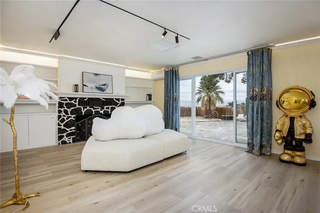 Four Bedroom, 3 bath mid century 1957 Ranchette remodeled with incredible lighting & Manga Modern Anime Chic decor & finishes. Light is really an important & beautiful thing - this home has rays for any mood or setting. The Tuya Smart lighting system in the living room allows for all kinds of lighting options ranging from as warm as the morning Mojave sun to as bright and cool as the harvest moon. Each bedroom has it's own unique lighting option too, accent lighting gives each room an inviting and comfortable feel. Still, nature does it best. You'll absolutely love watching the sun rise against the backdrop of the sherbet colored Bullion Mountains & our unparalleled golden hour sunsets. The home is set on quarter-acre parcel with a half circle driveway, easy access - plenty of parking. Inside we enter into an open-concept living area - the dark masonry fireplace contrasts perfectly against the bright, modern color palate. New sliding doors & picture windows line the walls. The kitchen is nicely updated with easy to clean surfaces and newer appliances. The massive living area really makes this home an ideal place to entertain - open flow from the kitchen & dining area on out to the back patio. On the east side of the home we have a large primary suite with tons of closet space, a work area & a bath with double-basin sinks. To the west we find a short hall with our 3 remaining bedrooms 2 of which share a full bath. To our right, another suite with office area, a full en-suite bath. The updated bathrooms feature several different levels of lighting as well as easy to clean van