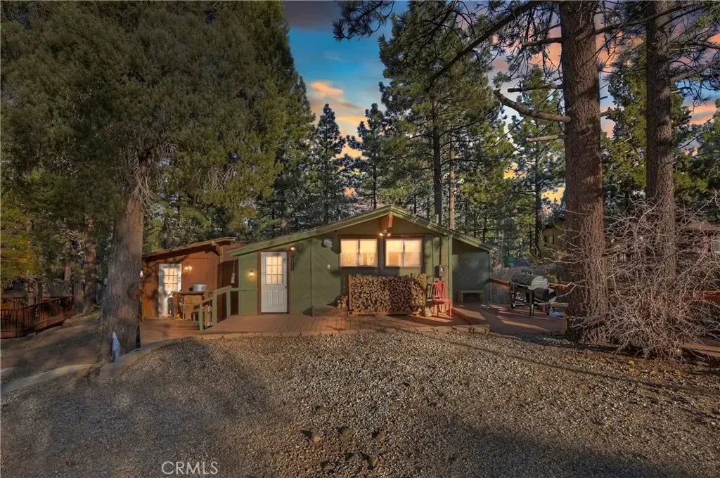 Welcome to 208 Muroc in Big Bear City! Nestled on a quiet cul-de-sac, this charming mountain retreat offers the perfect blend of comfort, character, and outdoor space. The inviting great room features stunning open-beam ceilings and warm light pine woodwork, creating a classic and cozy cabin feel. An airtight freestanding fireplace provides the perfect spot to gather and relax on chilly mountain evenings. The kitchen is both functional and inviting, featuring a granite-topped island that doubles as a breakfast bar great for casual meals or gathering with loved ones. Sliding doors from the great room lead to a large Trex deck, offering a seamless indoor-outdoor flow for entertaining or simply enjoying the fresh mountain air. One of the standout features of this property is the expansive, fully fenced backyard. Whether you're hosting barbecues, letting kids or pets run free, parking an RV or boat, or just relaxing under the open sky, this oversized yard has endless potential. A powered shed adds excellent storage or workshop space, while the quiet cul-de-sac setting enhances the homes peaceful vibe. With thoughtful touches like a separate laundry room and additional entryway, this well-maintained home reflects true pride of ownership. If you're looking for a serene escape with plenty of space both inside and out, 208 Muroc is the perfect Big Bear retreat!