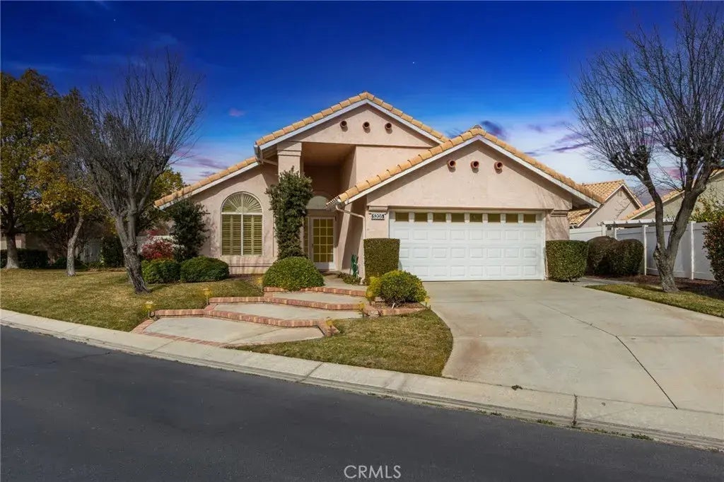 Welcome Home to this 55+ Country Club Community. The Riviera Model home is a favorite at 1505 sq. ft. It is unique because of it's irregular lot and park-like setting. You will find manicured foliage on all sides of this charming home. Note the masonry brickwork as you drive into this oversized driveway. Entering the home you will be pulled in by the warmth of the oak flooring and greeted by the bright living room with vaulted ceilings. Adjacent is a dining area divided by a pony wall. This space takes on a great-room quality but tastefully defines the two. The arched doorway with transom opening above, takes you into the large kitchen and family room with a fireplace and sliding door to the large shaded patio. On the other side of the home is a guest bath, guest bedroom and farther back is the primary bedroom with en-suite, walk-in closet, vanity with double sinks and A BONUS ROOM. The attached room has an additional closet. Make it a dressing area, craft room, office or personal den. The primary bedroom has a sliding door to the patio and substantial back yard. Due to the irregularity of this property, it makes the patio and back yard a little more private and inviting. The attached two car garage with laundry area enters directly into the home, which offers privacy and convenience. You will enjoy living in Sun Lakes Country Club and owning this handsome home. One resident must be 55 years young.