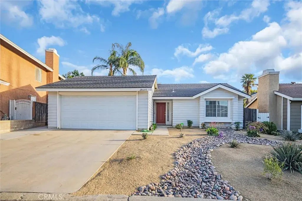 Darling home in Village Lakes of East Highland. This home would be perfect for a young person or couple starting out or someone needing to downsize. The living room and dining room are at the center of the home with bedrooms and baths at either end. The kitchen has a small breakfast bar and window over the sink looking out to the sweet backyard. The backyard patio was extended with extra concrete and a solid cover to shade you from the warm summer afternoons. It is large enough for an outdoor living room and BBQ! A two car garage is attached and laundry is located there along with your newer furnace and water heater. The HOA dues are low and cover the community pool and spa, lakes, ball field, parks, street maintenance, and common grounds. There is on site RV storage for $30-$60 per month depending on the size of your rig. The curb appeal is so cute with new drought tolerant landscape all on a drip water system. The home is located at the center of the community on a cul de sac offering a sense of security. Very close proximity to Highland Grove Elementary, Beattie Middle, Arroyo Verde Elementary, shopping, gas stations, hardware store, freeway, places of worship, and restaurants all without being affected by traffic. The Washer, Dryer and Fridge stay! Open House 1/25 @ 11-2