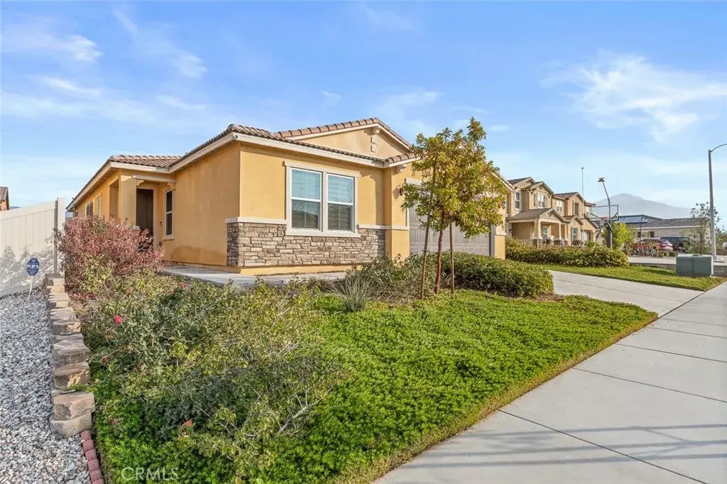 Welcome home to this hard to find Redlands single-story home. This home is located on a Cul-De-Sac street and has NO HOA! This beautiful, KB home built in 2020 features 4 bedrooms and 2 bathrooms. The primary bedroom is a true retreat, featuring a separate soaking tub, walk-in shower, dual sinks, and a large walk-in closet. As we walk down the hallway there is a large laundry room with a sink, then we come to the other three spacious bedrooms with a full bathroom. Back into the main living area you will find a light, bright and open space, offering a Chef's kitchen with quartz countertops complete with island/breakfast bar and walk-in pantry. All of this is open to the large comfortable living/family room and dinning area. The large backyard is enclosed by vinyl fencing, ensuring privacy and security and is ready for its new owner to landscape as desired. No HOA, Paid off Solar included!!. Residents will enjoy various onsite amenities, including parks, a walking trail, a playground, and a picnic area within the Redlands Unified School District. The nearby area is host to shopping, dining, and entertainment at the Redlands Citrus and Mountain Grove Shopping Center, and access to the I-10 and CA-210 freeways makes travel and commuting simple.