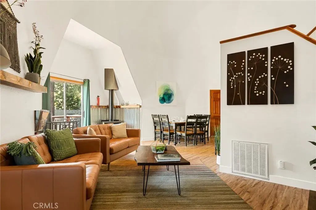 Back on Market! No fault of the seller! Home Sweet Geodesic Dome Style HOME. Offering 4 Bedrooms/2 Bathrooms + a Bonus Room. Circular Living room, Kitchen, and Laundry Room which leads to 2 Bedrooms and Bathroom and pantry/closets on Main Floor. Nice Wide Staircase leads to Primary Bedroom with Vaulted Ceilings and Bathroom plus another loft Bedroom. Woodburning Stove for Chilly Days + Newer floors, Fresh Paint, Quartz Countertops and updated Bathrooms. Residing on gentle sloping fenced lot with a Deck for Outdoor Entertainment and Usable Space for Kids and Pets to Run and Play. Built in 1993, custom and one of a kind currently being used as a Short Term Rental and can be sold FURNISHED (Negotiable). BONUS room is currently a Game Room with Attached LARGE storage area. MULTIPLE storage spaces and closets throughout. TRANSFER SWITCH allows you to connect a generator (Bring your own) should we lose power. Multiple outside enclosed storage areas. Detached Single Car Garage and Parking for 4 cars, and located in a Great Commuter Location just minutes from Snow Valley Ski Resort and Sky Park at Santas Village.