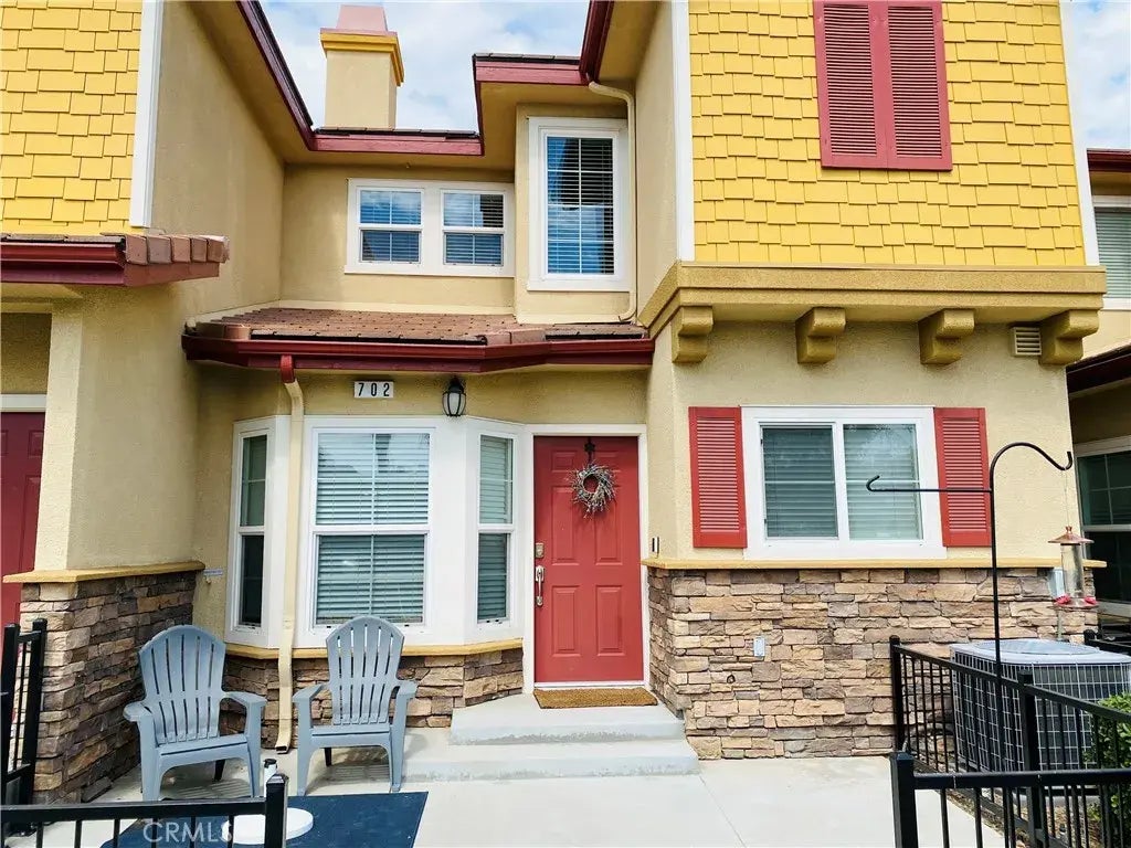 Well-maintained two-story townhome in the desirable gated community of Villa Valencia. Open floorplan with a neutral color palette, tile and wood-look flooring throughout the downstairs, and dual-pane windows with attractive faux wood blinds. Bright and open living room with tiled corner fireplace, kitchen with granite countertops, stainless steel appliances, included refrigerator, and plenty of cabinet space. Dining area is open to living room, and theres a half-bath downstairs. Upstairs are two spacious primary suites, each with their own walk-in closet. One suite has dual sinks and a small balcony. Direct-access two-car garage with included washer and dryer. Large front patio overlooks the association pool, playground, and basketball courts. Rent includes water & trash. Close to LLUMC and VA Hospital, Downtown Redlands, ESRI, and shopping.