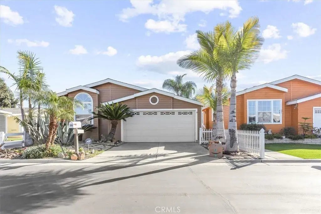 Welcome to your dream home in La Lampara Stanton's premier 55+ community! This exquisite manufactured residence, situated on a desirable corner lot, offers an expansive 1,411 square feet of living space, featuring 3 bedrooms and 2 bathrooms. Upon entering, you'll be captivated by the high ceilings and abundant natural light that enhance the home's spaciousness. The generously sized master suite is a true retreat, boasting an oversized bedroom, a luxurious bathroom, and an expansive walk-in closet. The open-concept living area includes a cozy fireplace, perfect for relaxing evenings. The modern kitchen is a chef's delight, equipped with a large island, ample cabinetry, and comes complete with a refrigerator, washer, and dryer. Recent upgrades throughout the home include French doors, recessed lighting, new ceiling fans, contemporary light fixtures, fresh interior paint, and new flooring, ensuring a move-in-ready experience. Community amenities are exceptional, featuring a clubhouse with a fireplace, an expansive dining hall with kitchen access, a sparkling pool and spa, and a game room for social gatherings. Residents enjoy a vibrant social calendar, including monthly Bingo nights and other engaging activities. Located in the heart of Stanton, this community offers convenient access to local attractions, grocery stores, restaurants and more. Stanton boasts an average Walk Score of 63, indicating that some errands can be accomplished on foot. The city also has a Transit Score of 35, reflecting some public transportation options, and a Bike Score of 55, suggesting that the are