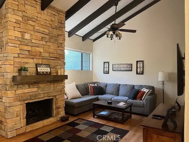 Welcome to Unit #410, the lowest priced home in the gated community of Meadow Bay North. This impeccably maintained 2 bedroom, 2 bath unit is just steps to the beautiful private beach, only for our homeowners and their guests. Charming kitchen with glass front cabinets, vaulted wood ceiling and recessed lighting. Wood floor throughout all but the bedrooms. Cozy living room with floor to ceiling stacked stone fireplace. Step out through the sliding door to the Trex deck that gives you the feeling of being up in the trees. New stainless steel refrigerator, oven, microwave and wine cooler. Home is offered furnished with just a few seller exclusions. Nothing to do to this home but move right in. To complete the package and begin enjoying the entire Lake Arrowhead experience, there is a DOCK SLIP AVAILABLE FOR EXTRA $. Short term rentals are allowed with a county permit. 6 night minimum, strictly enforced. Dont wait. Call now for a showing.