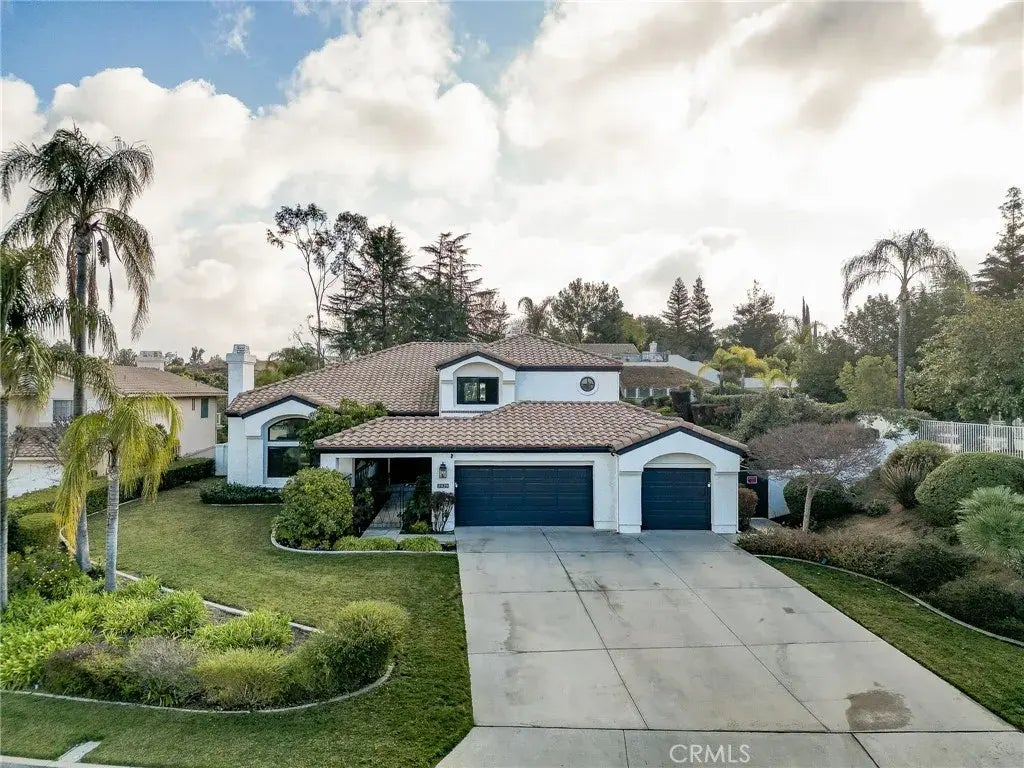 This house has it all! 4 Bedroom 4.5 bathroom beautifully updated home with views! Enter from a lush gated courtyard into this over 3,300 Square foot home to an entry with cathedral ceilings. The grand living room off the front includes a stately fireplace and views of city lights plus a formal dining space with beautiful built-in china cabinet and french doors to the flat rear yard and charming patio. The Gourmet kitchen boasts stainless appliances, oversized island with room for seating, walk-in pantry, bar top area with seating for six and opens to the family room and exterior patio. Family room has a cozy fireplace area plus another large space, its own charming patio and a beautiful built-in bar area. There is a full bedroom suite with bathroom on the first floor and a powder room. Upstairs has a very large primary suite with views of the rear yard, beautifully updated bathroom with dual sinks, a separate luxurious bathtub and shower plus a nice walk-in closet. Upstairs there are two additional bedrooms each with their own bathrooms and a built-in desk area. The rear yard has a newer pool house/game room, lots of flat grassy yard, putting area, built- in fire pit, dining area plus a newer sparkling pool and spa, patio area and built-in bbq. There is also a 3 car attached garage.