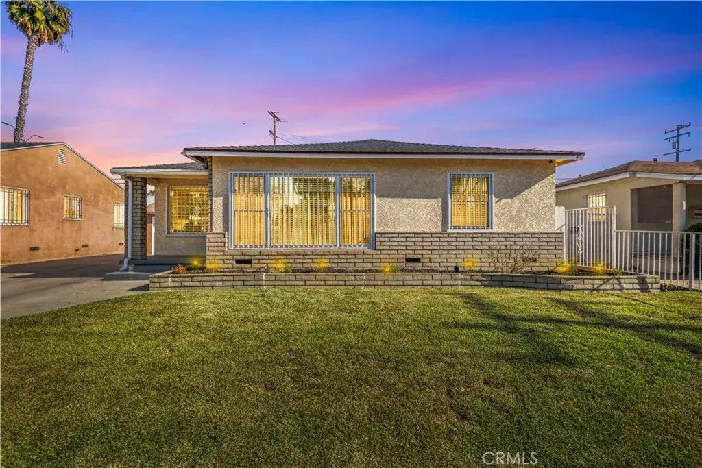 Welcome to this charming single-story home in Bellflower. This beautifully upgraded 3 bedroom, one and 3/4 bathroom home offers a comfortable and stylish living experience. As you enter the home, you'll love the spacious living and dining room featuring laminate flooring, recessed lighting and neutral paint tones. Head into the kitchen that boasts upgraded cabinets, sleek granite countertops, intricate tile backsplash, stainless steel appliances and tile flooring. Beyond the kitchen is the indoor laundry space with access to the backyard. The primary bedroom is located at the back of the home making it a private retreat complete with attached bathroom and access to the backyard as well. Two additional generously sized bedrooms (with ceiling fans) share a renovated hallway bathroom. Both the primary and hallway bathrooms feature upgraded vanities, tile flooring, light fixtures and neutral tile in the shower and bathtub enclosure. There is a large attached storage area behind the garage perfect for a gym, office or all your boxes. The home has a detached 2-car garage and privacy fence leading to backyard featuring a patio cover, large grass area and new water heater. This home is close to shopping, dining, schools and has convenient access to freeways. No HOA and low taxes too!!! Don't let this one pass you by!!!