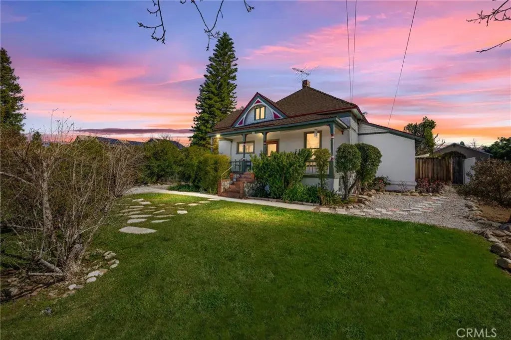 Vintage Redlands home with a full guest house on over .4 gated acres with no HOA and plentiful fruit trees! Built in 1905, the main home features over 1900 square feet, four bedrooms, and three bathrooms. The front door, with a large porch on both sides, leads into a light, airy living room with large windows. An adjacent dining room flows into a sizable kitchen. There is a primary bedroom downstairs with a walk in closet and its own bathroom. There is also a second bathroom, a home office, and a laundry room downstairs. Head upstairs, and you'll find three more bedrooms with an additional bathroom. The 586 sq ft guest house has its own bathroom, a full kitchen, a loft bedroom atop a spiral staircase, and is totally separate from the main home. There is a sizable deck off the kitchen, as well as a jacuzzi and outdoor shower with hot and cold water. The lot also features a covered carport, and a redwood shed for additional storage space. There are a number of fruit trees on the property, producing avocados, oranges, and juicy grapefruits to name a few. Great location - it's your own private oasis, but less than five minutes to I-10 for your commute. Excellent Redlands schools.