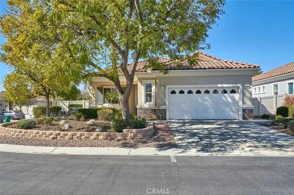 Popular "Trillion" model in Solera, a 55+ gated community. New carpet and fresh interior paint. This home is move-in ready and priced to sell quickly. Inside, youll find a spacious living room with a cozy gas fireplace, a kitchen with Corian countertops, and a versatile den/office. The primary suite features both a walk-in shower and a soaking tub. All appliances are included. The garage has an extra nook, perfect for a workbench or extra storage, plus plenty of cabinets and overhead shelving. Outside, enjoy a low-maintenance yard with artificial turf, raised planters, and mature shade trees. A charming front sitting area is ideal for morning coffee. Solera has a clubhouse, pool, spa, gym, indoor walking track, tennis courts, bocce ball, clubs to join, classes, and group trips. HOA includes basic Spectrum cable and internet. Conveniently located near Palm Springs, Redlands, Cabazon Outlets, Morongo Casino, and top golf courses, with easier access to the 10 freeway than other 55+ communities in Beaumont. Welcome to the good life!