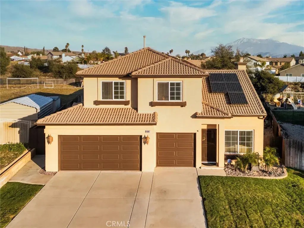 Popular two-story floor plan in a non-HOA community in Beaumont. Welcome to this beautiful home, freshly painted inside and out, offering a perfect blend of modern comfort and inviting charm. This is one of the largest lots in the tract with a huge rear yard. As you enter you are greeted with high ceilings and lots of natural light in the formal living room and dining room. The kitchen has a large center island which opens to the breakfast nook and family room with a cozy fireplace. The kitchen is equipped with newer appliances (2024) and dishwasher (2021), perfect for those who enjoy cooking, and the home includes an inside laundry area with a washer and dryer (2021) for added convenience. With 4 spacious bedrooms and 3 bathrooms, this home is ideal for families of all sizes. The downstairs bedroom and bath offer added convenience/flexibility as a home office, gym, guest room or multi-generational living. The large primary bedroom features a generous walk-in closet, separate shower and tub. Additional bedrooms upstairs are good sized with large closets and great natural light. Ceiling fans are thoughtfully placed throughout the home, ensuring a comfortable atmosphere year-round. Step outside into the expansive backyard, a true oasis for relaxation and entertainment. Enjoy the tranquil sounds of a beautiful fountain and relax under the covered patio while enjoying BBQs made easy with gas hookups. The sparkling pool and soothing jacuzzi create a perfect retreat, while the lush grass area offers plenty of space for play. The yard is beautifully illuminated in the evening with