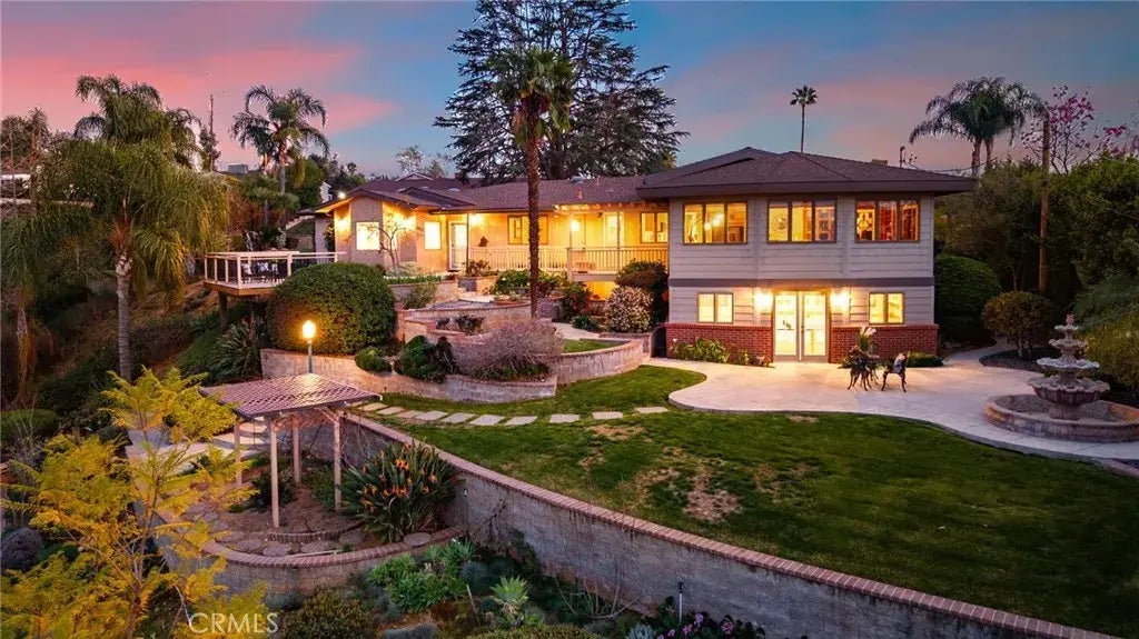 Exquisite Mid-Century Modern Home in Country Club Estates with Breathtaking Views, just steps from the prestigious Redlands Country Club, this stunning mid-century modern residence is a showcase of architectural elegance, characterized by vaulted wood-beamed ceilings that enhance its spacious and airy ambiance. The home offers an unparalleled living experience with mesmerizing views of city lights by night and expansive mountain vistas by day located on a almost three quarter acre lot. The seamless open floor plan is highlighted by solid oak hardwood floors and high-end Anderson dual-pane windows that invite copious natural light while offering panoramic scenery. The living room features a cozy fireplace and the heart of the home, the great room, has extensive built-in cabinets and striking wood beams that emphasize its mid-century modern aesthetic. This space flows directly into the kitchen, equipped with modern amenities and a separate in door laundry room. Accommodations include a spacious guest bedroom complete with a large walk-in closet, and a versatile third bedroom or office that includes built-in desks, cabinets, and a separate entrance, enhancing privacy and convenience. Additionally, the property features a large bonus room currently set up as a game/ping pong room, also with a separate entrance and French doors that open directly to the beautifully landscaped backyard. Outdoors, the property continues to impress with a meticulously maintained garden boasting a variety of fruit treesapricot, persimmon, peach, apple, lemon, orange, tangerine, grapefruit, grapes, f