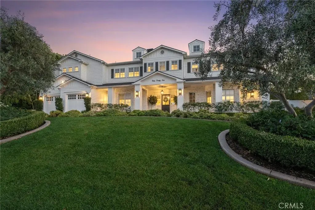 This exquisite custom home, built in 2017, offers a timeless East Coast Traditional aesthetic blended with modern luxury. Ideally located on the 12th green of Redlands Country Club, it captures expansive views and provides a seamless indoor-outdoor lifestyle. From the welcoming front porch and Dutch door entry, the open-concept floor plan flows effortlessly between the kitchen, family room, and rear patioperfect for both entertaining and everyday living. At the front of the home, the formal dining room is richly appointed with wood wall and ceiling details, built-in cabinetry topped with marble, a marble mosaic backsplash, and grasscloth wallpaper. The gourmet kitchen is a true centerpiece with an oversized marble island, farmhouse apron sink, abundant storage, and seating space. Professional-grade stainless appliances include a double-oven range, additional wall oven, and built-in microwave. Antiqued black limestone perimeter counters, handmade subway tile backsplash, and a cozy breakfast nook with built-in bench and custom table add warmth and charm. A butlers pantry with wine storage, beverage refrigerator, ice maker, and walk-in pantry completes the culinary space. The family room features exposed wood beams, a charming fireplace, and a large accordion door that opens to the backyard retreat. Outdoors, enjoy a covered patio, sparkling pool and spa, built-in firepit, BBQ island with bar seating, and expansive grassy yard. The main level offers two bedrooms, including a private guest suite with attached bath, walk-in closet, and direct yard access. Upstairs, a versatile l