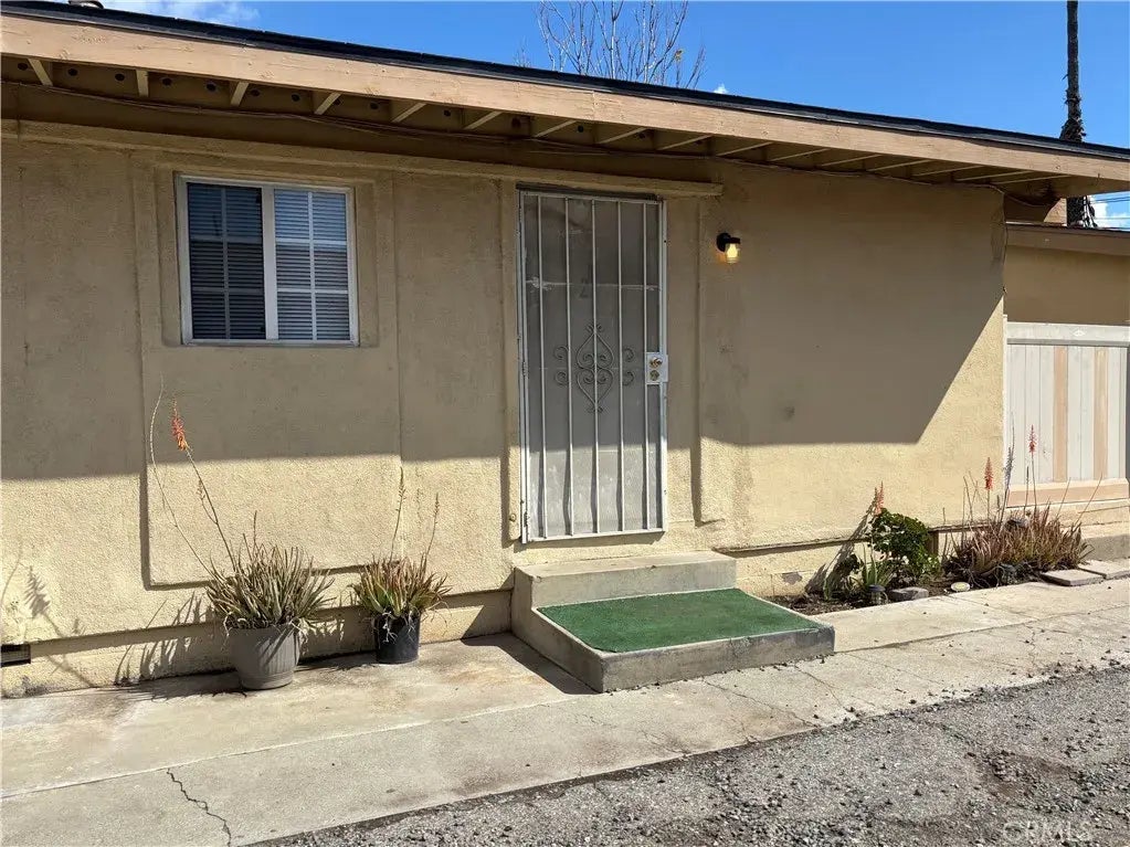 One bedroom unit in Riverside. Laminate wood floors, dual pane windows, fresh paint. Private covered patio. Water & sewer included. Small to medium size pet permitted with deposit. Minimum one year lease. This is unit #two in a triplex.