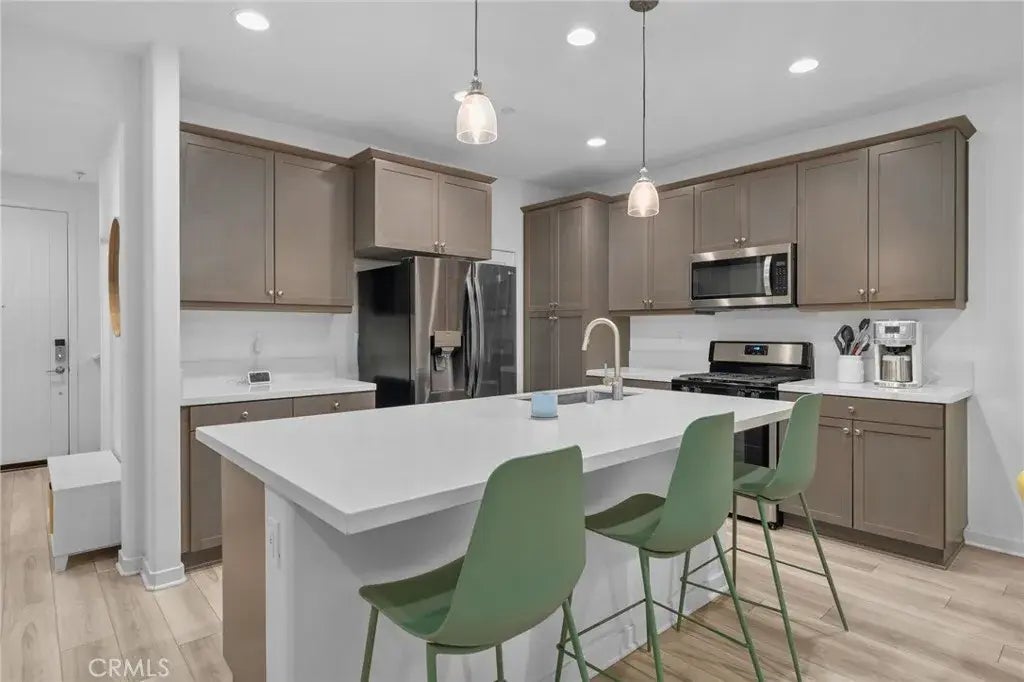 Step into modern, luxury, resort style living located in the heart of Rancho Cucamonga! This modern home truly checks all the boxes, offering 3 spacious bedrooms, 3 bathrooms, and a convenient two-car garage. Upon entry, youll be greeted by upgraded plank flooring that flows seamlessly throughout the first floor. The open-concept main living area is perfect for entertaining, featuring a modern kitchen complete with quartz counters, a large center island with additional seating, stainless steel appliances, recessed lighting, ample cabinet space, and a spacious walk-in pantry. Shutters and recessed lighting are installed throughout the home, adding both style and functionality. Upstairs, youll find all three bedrooms, including the primary suite, which boasts an en-suite bathroom with dual sinks and a walk-in shower. The two additional bedrooms share a convenient Jack and Jill bathroom. Step outside to enjoy a private backyard patio area, perfect for relaxing or hosting guests. Located just minutes from major freeways, popular shopping and dining destinations, including Ontario Mills Mall, Victoria Gardens mall, local hangouts like Big Als, 4th & Mill, and so much more, this home offers both luxury and convenience. Residents also enjoy access to resort-style amenities, including a gym, clubhouse, pool, meeting rooms, outdoor entertainment areas, and more. Dont miss this incredible opportunity to own in one of Rancho Cucamongas most sought-after communities!