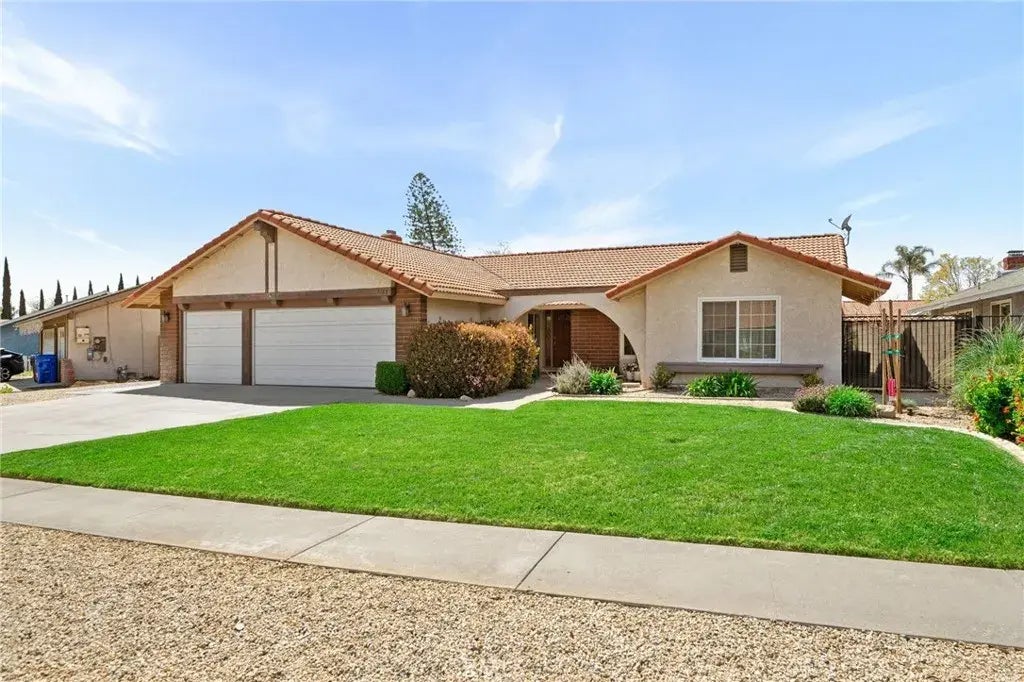 Welcome to this stunning 4 bedroom, 2 bathroom single-level remodeled home with breathtaking mountain views! As you step inside this turn-key home, you're greeted by a spacious living room bathed in natural light, seamlessly flowing into an adjacent dining room perfect for family gatherings. The kitchen is recently upgraded with luxurious finishes , boasting bright countertops, ample cabinet space, and a cozy breakfast bar where morning conversations over coffee are a must. Adjacent to the kitchen, the family room features a unique fireplace, creating a cozy atmosphere for relaxing evenings. The executive suite serves as a private retreat with its spacious layout, complemented by a large remodeled bathroom featuring a stunning walk-in shower, dual sinks, and generous closet space. Three additional bedrooms offer versatility, ideal for a growing family or transforming into a home office, gym, or guest quarters. The nearby full bathroom gleams after the remodel and ensures convenience and privacy for everyone in the household. Step outside to the meticulously landscaped backyard, complete with a covered patio for alfresco dining, a lush lawn perfect for playtime with pets, and a fruitful citrus tree adding a touch of charm and freshness. A convenient storage shed complements the expansive 3-car garage, providing ample space for storage, hobbies, or workshop needs. Located conveniently near the 210 freeway, the new Renaissance Marketplace featuring theater , restaurants and shopping! Close proximity to highly rated schools ranging from elementary to high school, this home offe