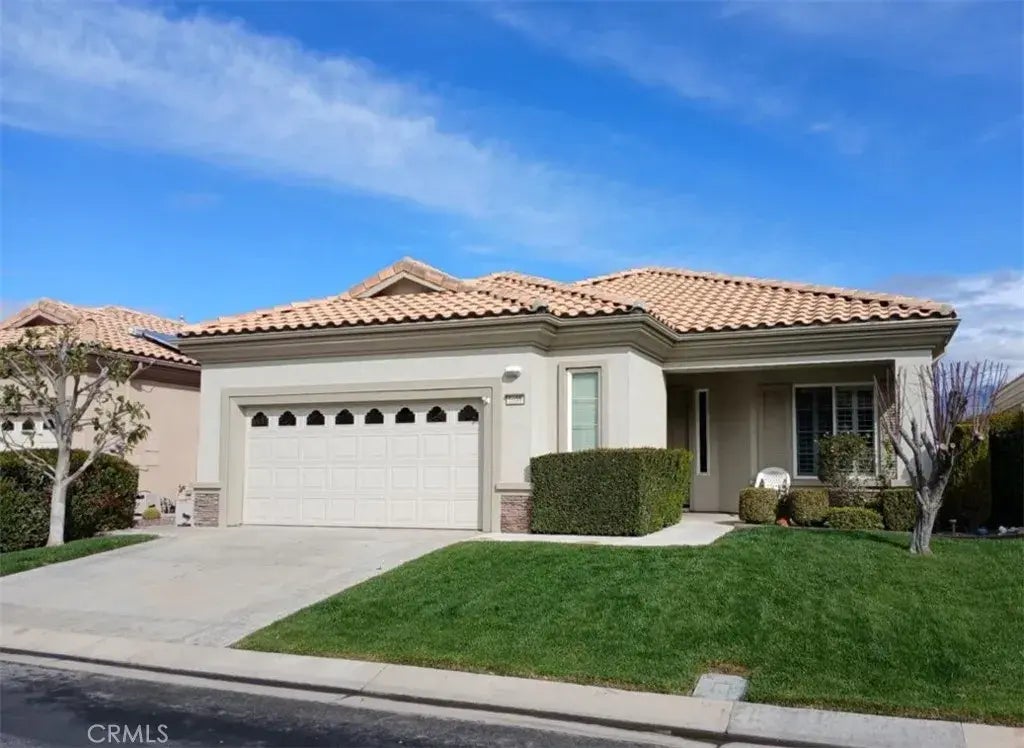 Highly Desirable, Energy Efficient, 2003 PULTE Built "TRILLION" Model w/MOUNTAIN VIEW FROM BACKYARD in Beautiful SUN LAKES COUNTRY CLUB, SO. CALIFORNIA'S PREMIER 55+ ACTIVE ADULT COMMUNITY. Approx. 1683 SF, 2 BD + Den, 2 BA, featuring the Great Room Concept, Open Kitchen with Corian Counters, Individual Indoor Laundry Room with soaking sink, Large Primary Bedroom w/huge Walk In Closet, Primary Bath with both walk in Shower & Garden Tub, Guest Bedroom w/Jack & Jill Bath, Ceramic Tile / Wood Flooring, Push Button Fireplace in Living Room, Plantation Shutters, New Water Heater, Newer Washer/Dryer, French Door Refrigerator, New Garbage Disposal & Kitchen Sink Fixture, Solid Alumawood Patio Cover, Low Maintenance Yard with a Lovely View Of the San Gorgonio Mountains. Excellent Location.YOU WILL LOVE THIS HOME! Two 18 Hole Golf Courses - Championship & Executive, Driving Range, 2 On Site Golf Pro Shops, 3 Clubhouses, Grand Ballroom, 2 Restaurants, NEWLY EXPANDED & REMODELED LOUNGE, Indoor & Outdoor Pools, Bocce Ball, Tennis, Pickle Ball, All Types Of Clubs & Events - Endless Opportunities For New Friendships. PLUS NO MELLO ROOS! AT SUN LAKES COUNTRY CLUB - EVERY DAY FEELS LIKE A VACATION!