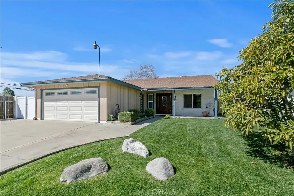 Welcome home! 1734 Tiffany Ct. is a charming 3 bedroom 2 bath home boasting 1,554 square feet of living space. This single level home is located at the end of a quiet and well maintained cul-de-sac and is impressive right from the curb. The property has a wide curved driveway that allows for extra parking. As you approach the custom front door, you'll pass a calming river bed water feature and notice that the exterior has been freshly painted. The interior has been remodeled and features stunning tile flooring and new looking carpet, and newer argon filled double paned windows throughout. The kitchen has been renovated with new soft close cabinets (with plenty of specialty pull out drawers), granite countertops, recessed and under cabinet lighting, a peninsula with a hang over for bar seating and matching appliances (fridge included). The adjacent closet has been converted into a pantry for extra kitchen storage. The family room features a custom built desk with matching granite countertops and a custom fireplace decorated with granite and wood. The bedrooms are all carpeted and feature ceiling fans. The primary bedroom features a lovely sliding glass door that gives you a view and access to the well landscaped backyard as well and an attached remodeled bathroom that features a large tiled walk-in shower. The backyard features a nice concrete patio with a slatted pergola that was lovingly restored- perfect for outdoor dining. There is also a lovely functioning koi pond/ water feature that brings a sense of calm in the outdoor space and can be heard from inside the primary b